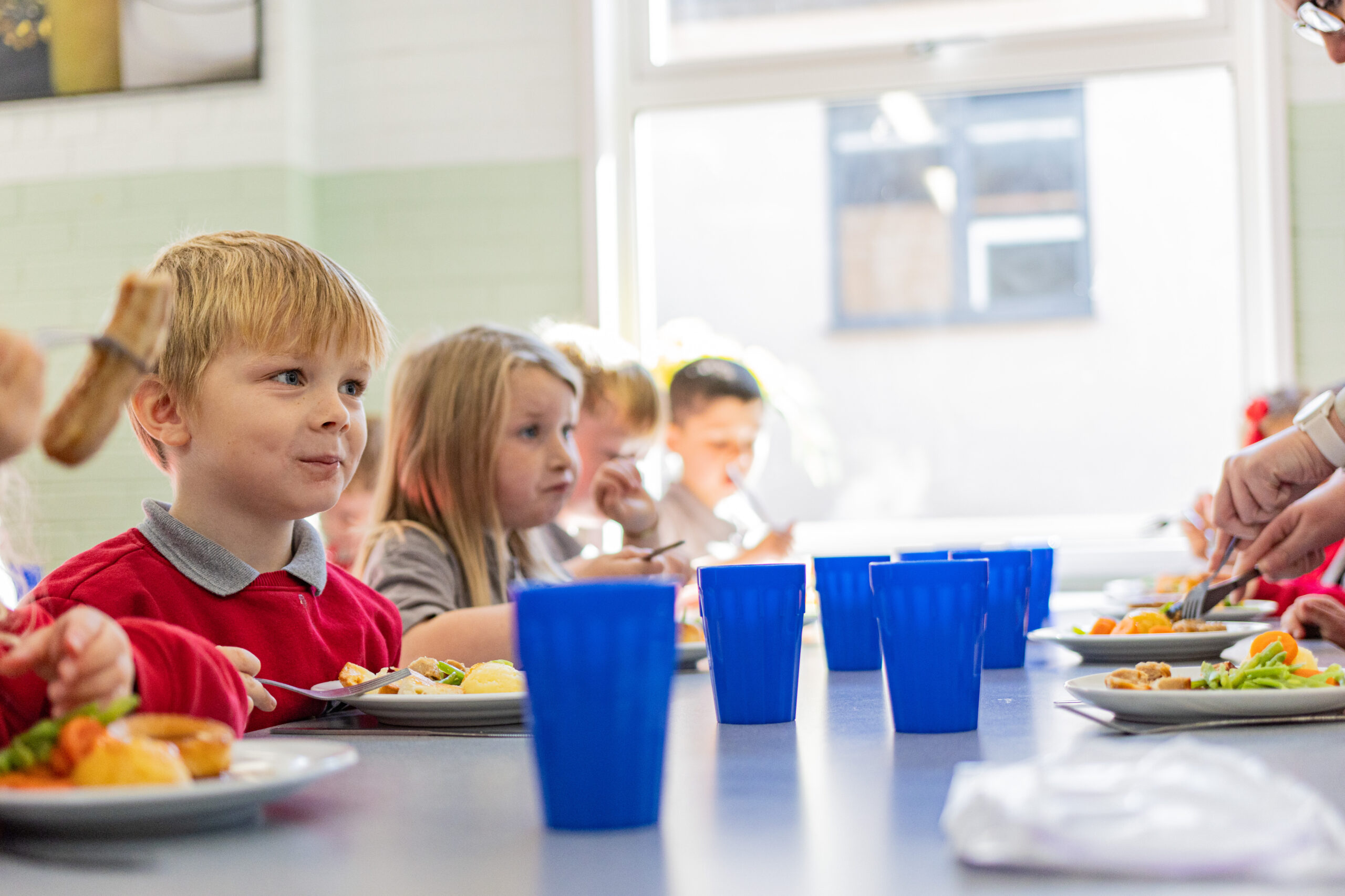 Mae’r cinio’n cael ei weini mewn awyrgylch gyfeillgar ac ofalgar yn ffreutur yr ysgol, gan annog plant a phobl ifanc i gymdeithasu a datblygu arferion bwyta da ar gyfer y dyfodol.